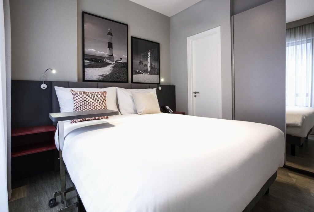A 3-minute walk from shops and restaurants at Salvador Shopping mall, this contemporary apartment hotel is 4 km from Armação Beach and 19 km from Aeroporto Internacional de Salvador–Deputado Luís Eduardo Magalhães.