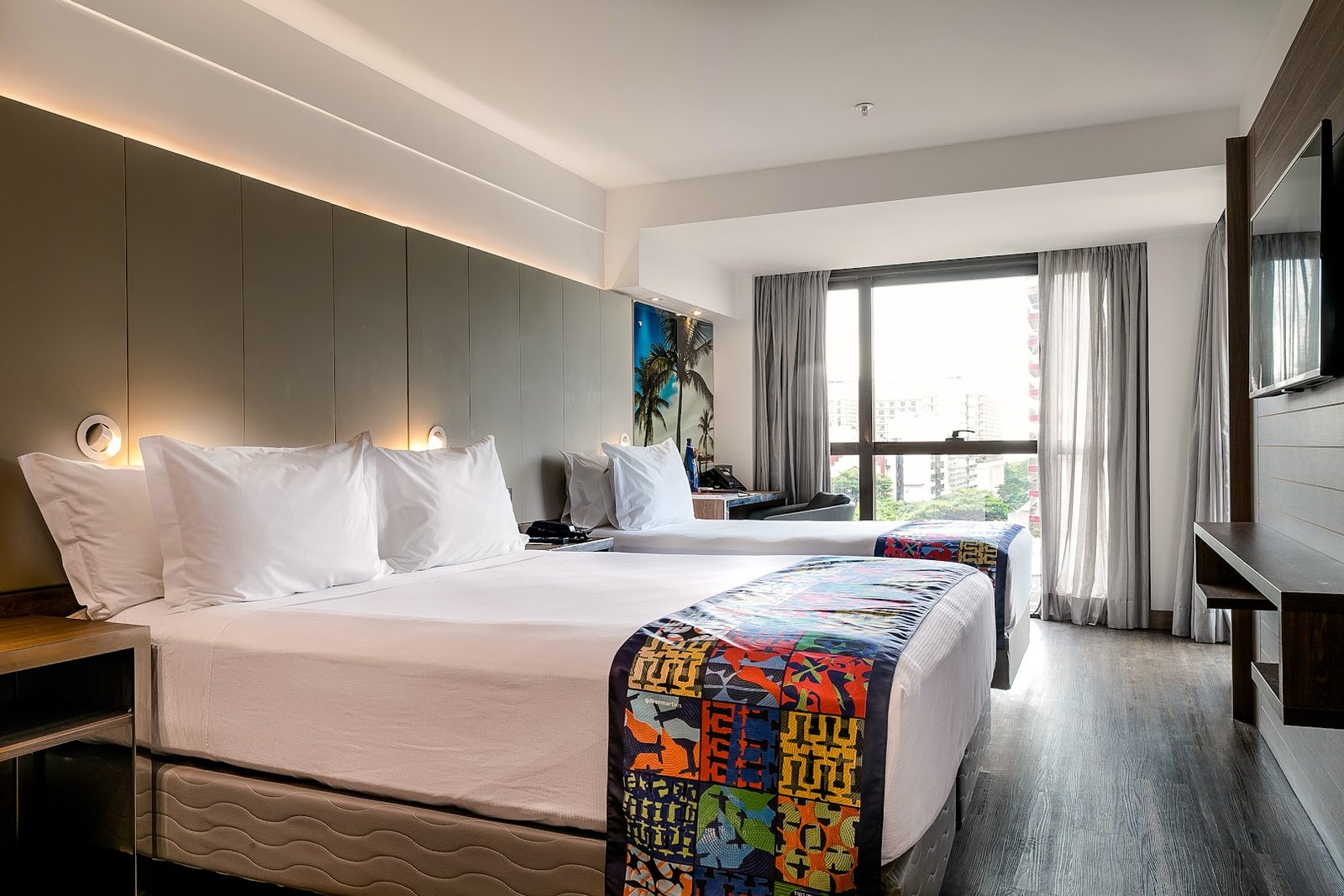 In a sleek glass-fronted building on a leafy street next to Garota de Ipanema park, this polished hotel with a hip vibe is an 11-minute walk from General Osório subway station, and 2 km from Copacabana Beach on the Atlantic Ocean.