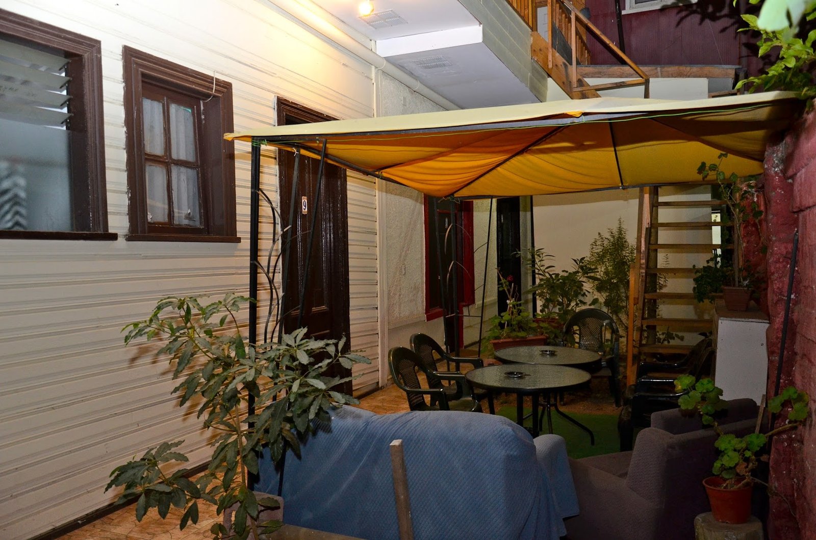 Breakfast is complimentary. There’s also a low-key lounge, and a patio with umbrellas.