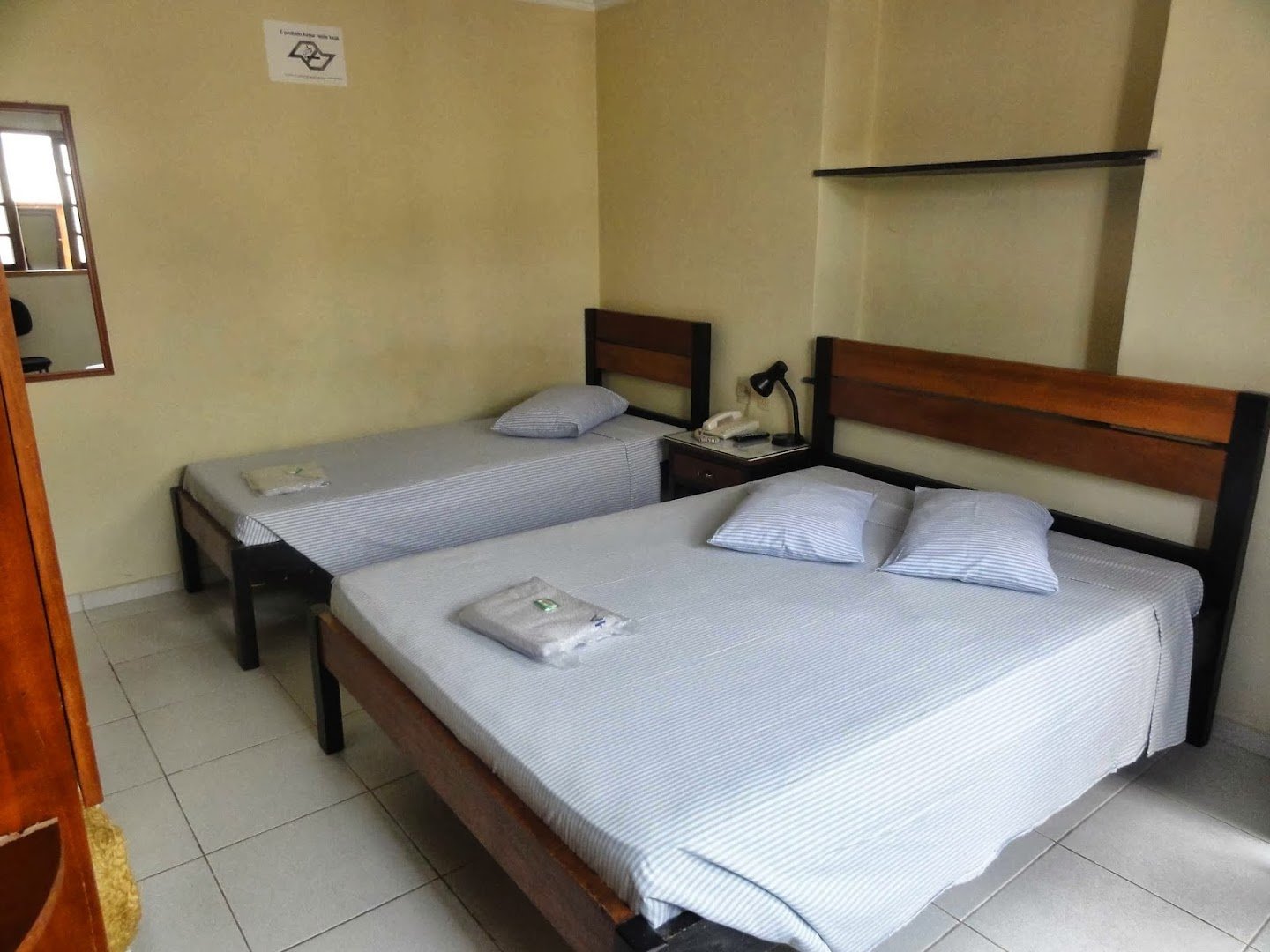 The straightforward rooms have tile floors and wood furnishings, plus minibars, cable TV and complimentary Wi-Fi. Room service is offered.
