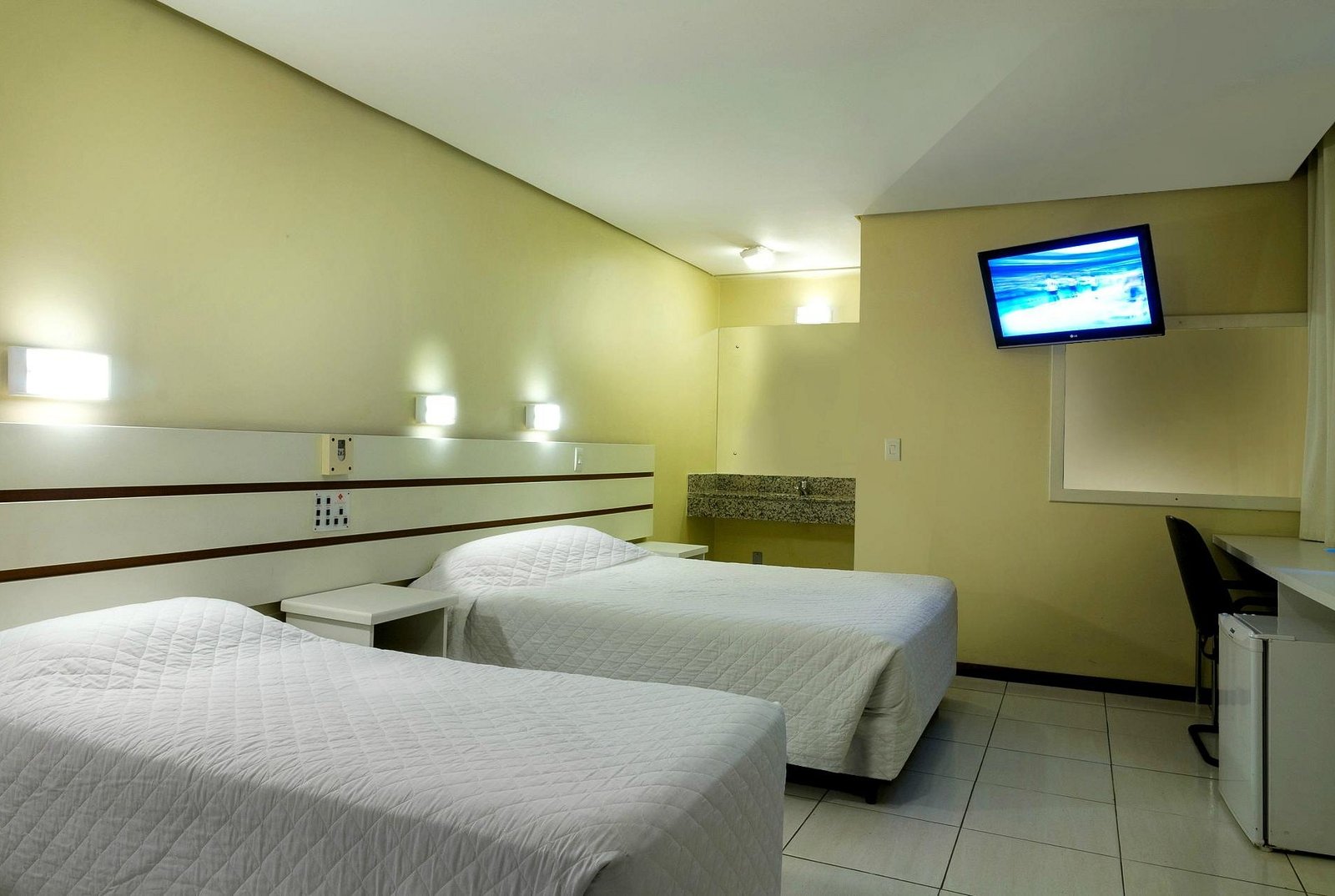 Set on a tree-lined avenue close to the historic quarter, this unassuming hotel is an 11-minute walk from both the RodoviĆ”ria metro station and the banks of the Rio JacuĆ, and 3 km from the Catedral Metropolitana de Porto Alegre.