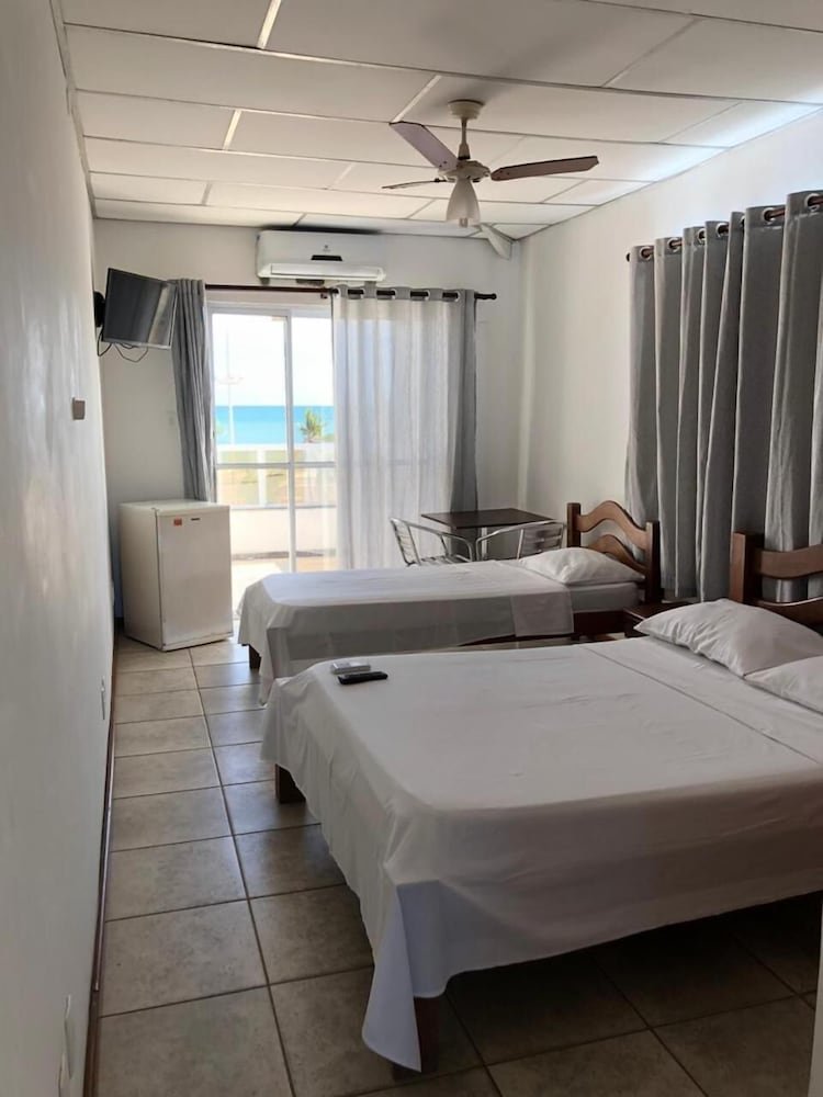 The understated rooms feature functional furnishings, and offer free Wi-Fi, TVs and minifridges. Some offer access to a shared balcony with beach views.