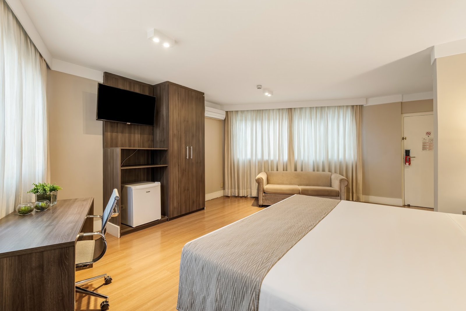 The unfussy rooms come with free Wi-Fi, cable TV and minifridges; some add sitting areas. Room service is available 24/7.