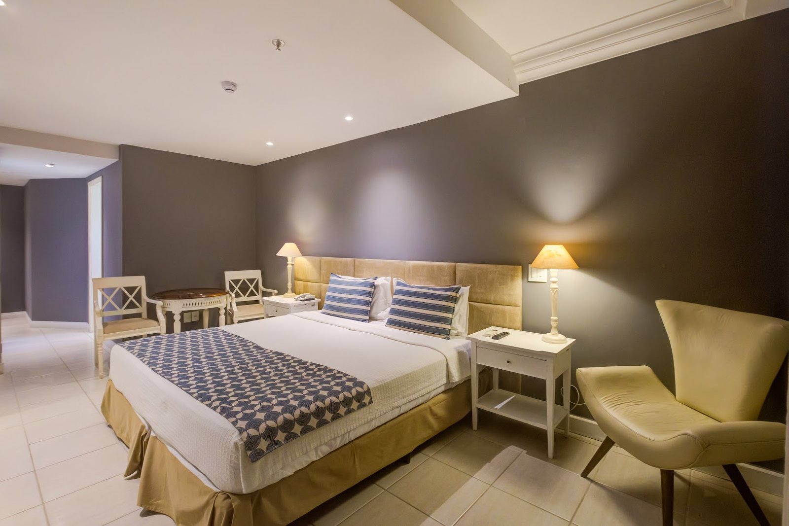 The bright, polished suites feature high-end linens, as well as Wi-Fi, flat-screen TVs, dining tables and/or desks.